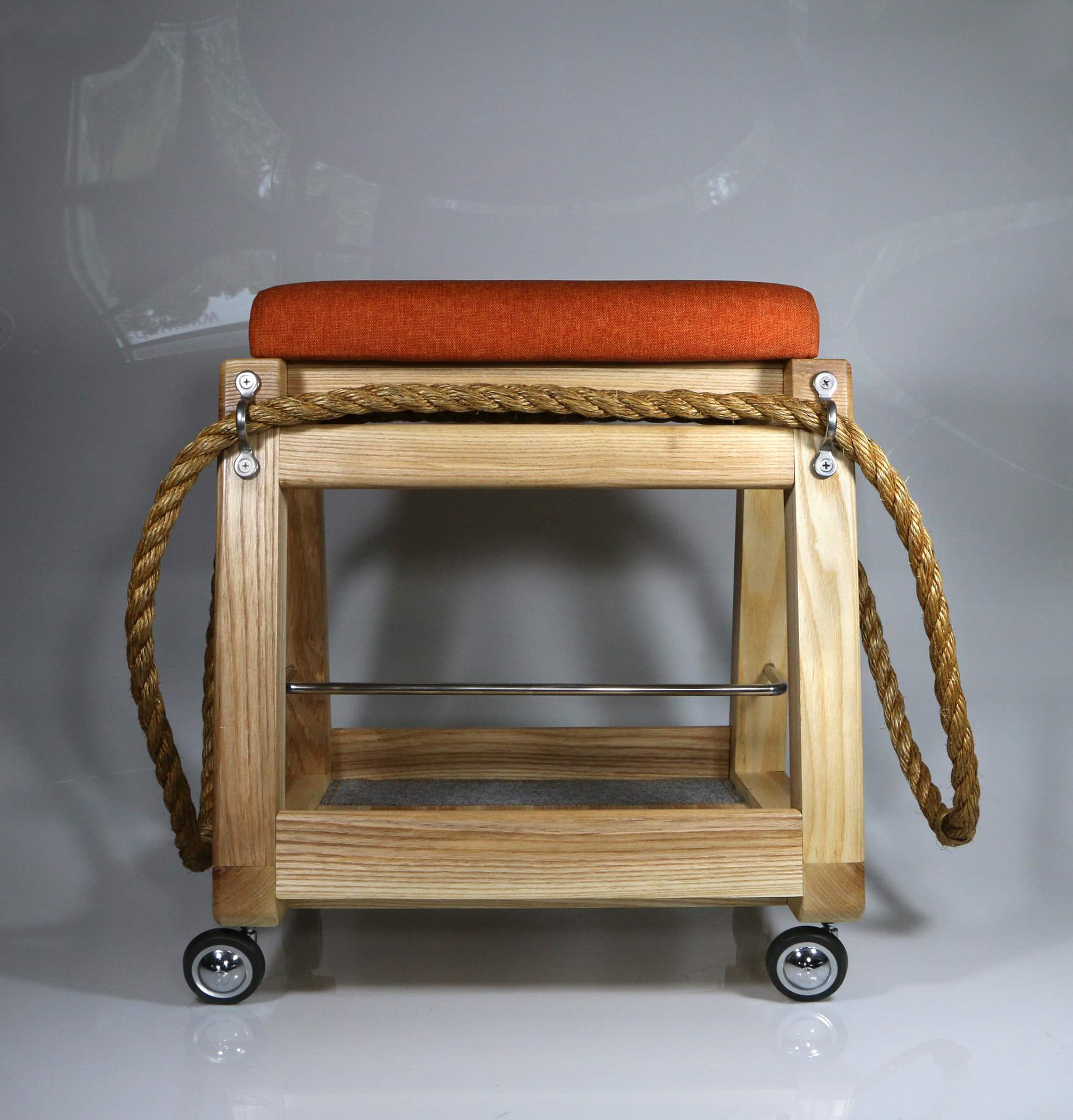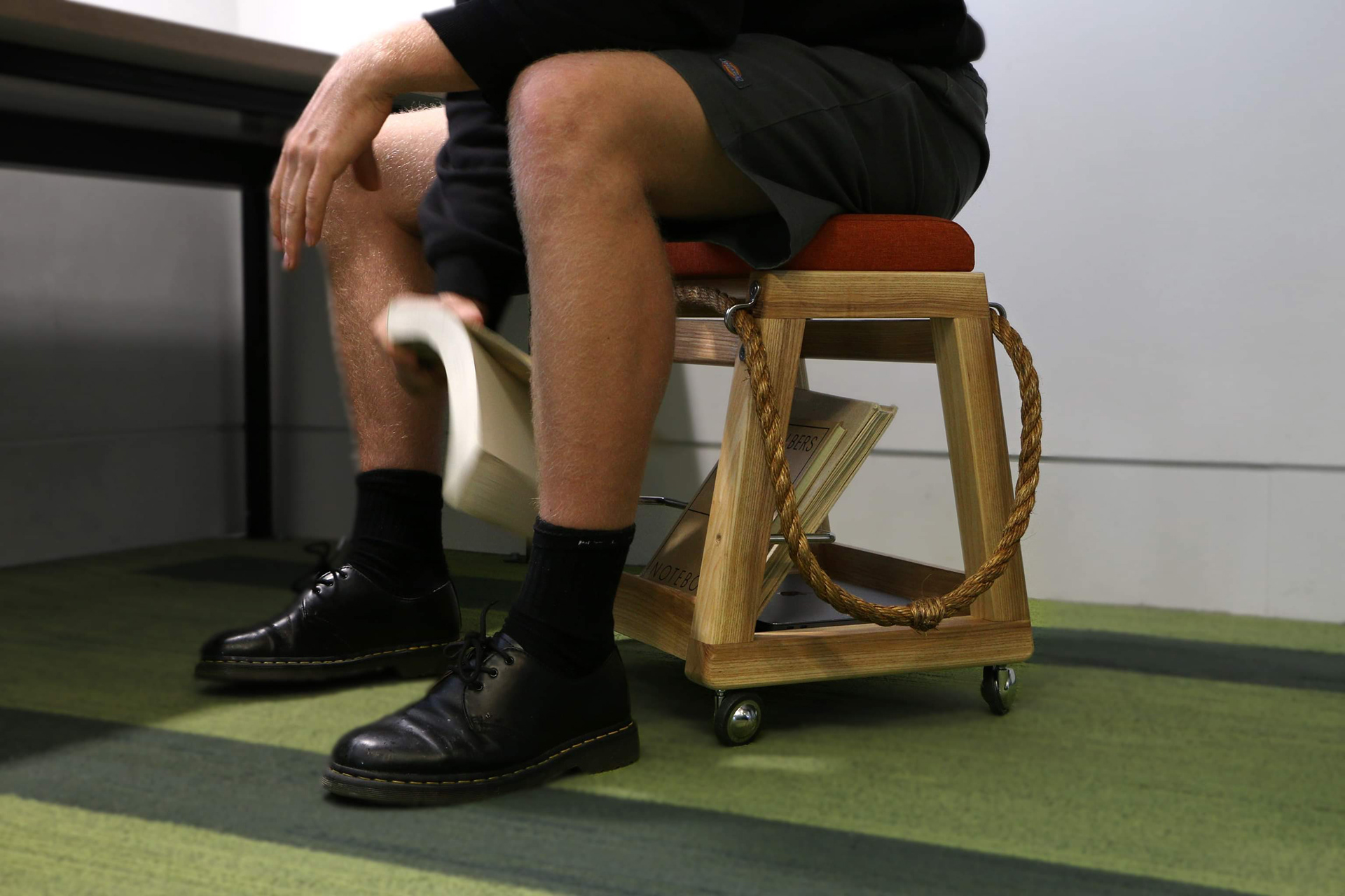 We engaged with multiple woodwork processes and upholstery techniques, these components come together to create a playful and comfortable library stool.