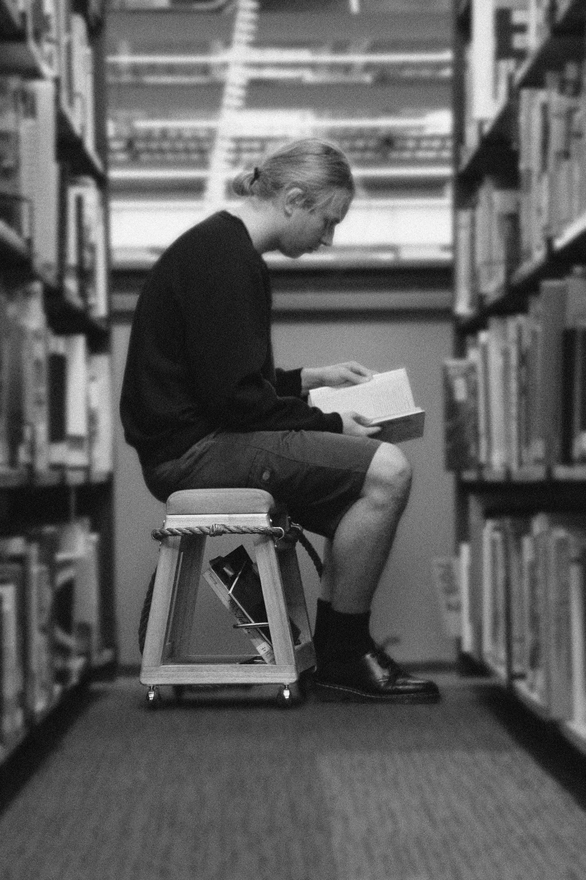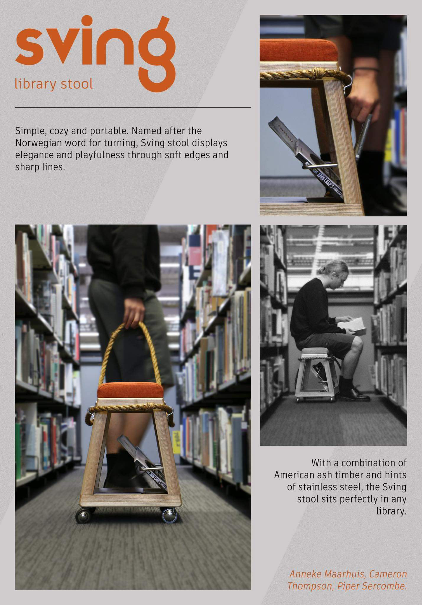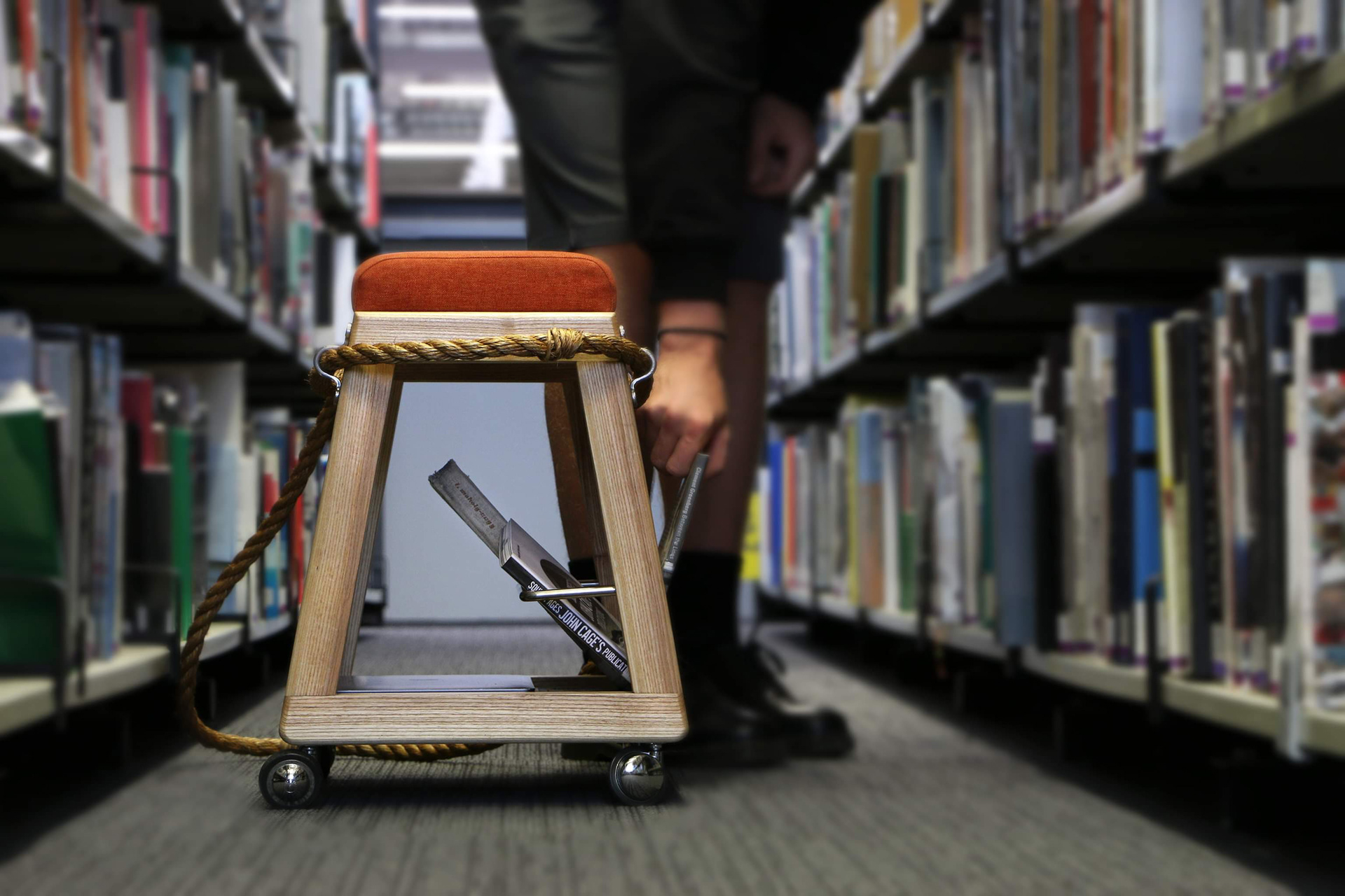 This stool was designed for the Massey Library, replacing the older, impractical existing stools in the space.